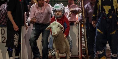 Almost more popular than the pro rodeo, mutton bustin' is during every Intermission. Children must be ages 4-6 and have a helmet.